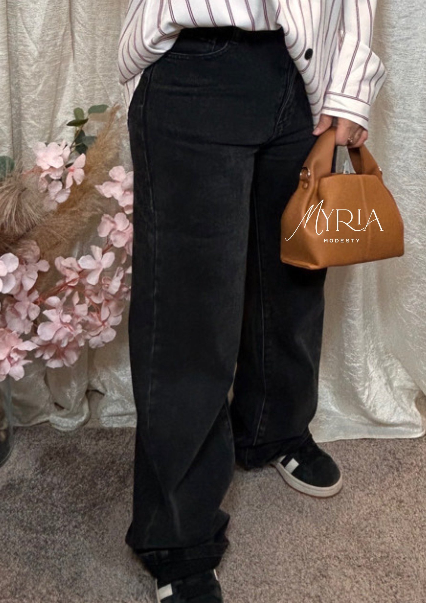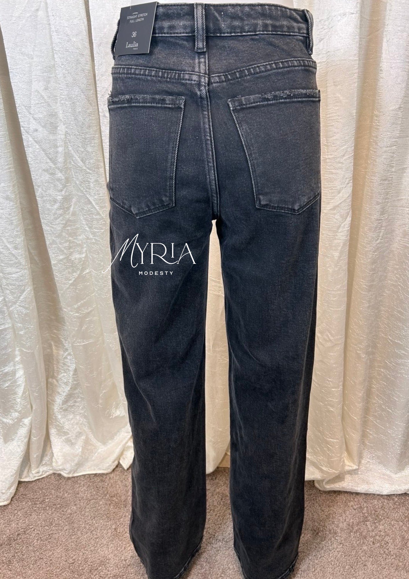 Jean noir coupe droite au style minimaliste : délavage discret, silhouette équilibrée et allure chic au quotidien.✨