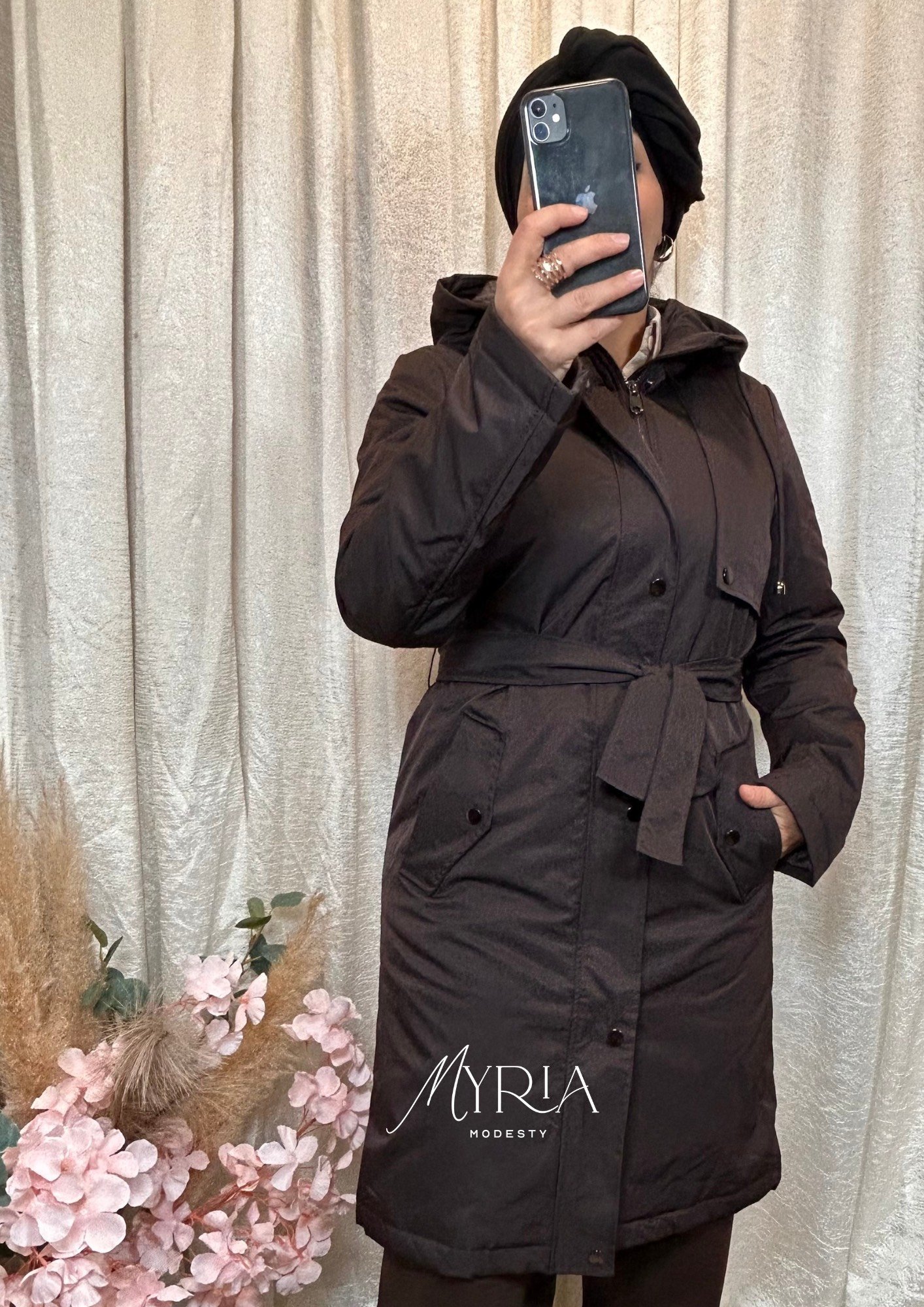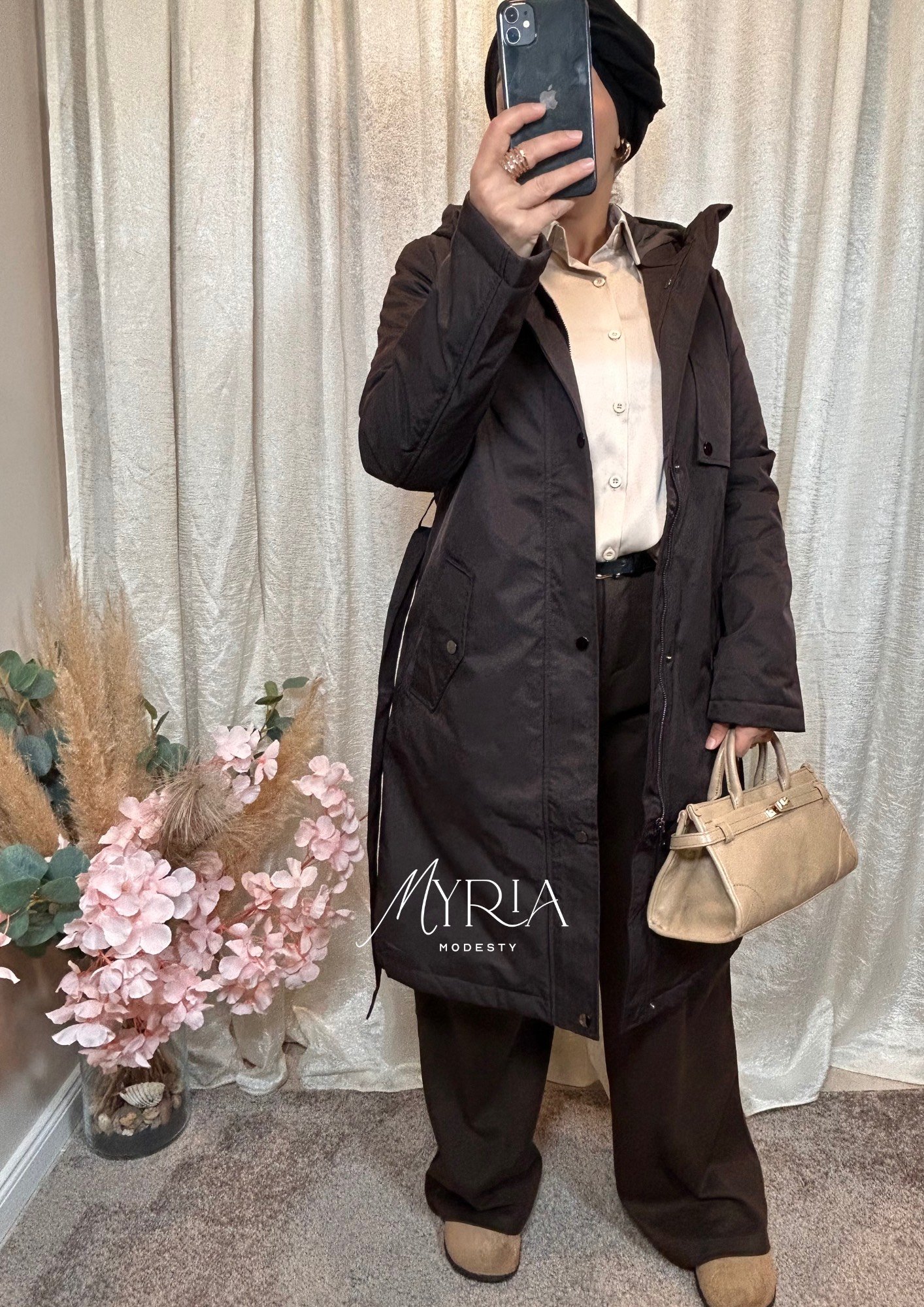 Cette parka imperméable légèrement rembourrée allie chaleur, confort et style minimaliste. Sa coupe droite, sa capuche pratique et sa ceinture amovible permettent de l’adapter facilement à votre silhouette.